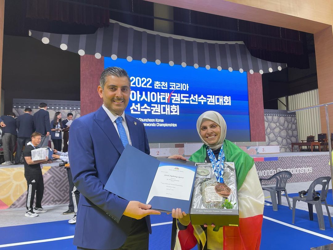 قدم الاتحاد الاسيوي جائزة افضل روح قتالية للاعب حنان الناصر وذلك لادائها العالي ومهاراتها في رياضة تايكوندو البومسا